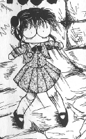 | Alienating/Out-of-context Devices. At right are two rendition "types" of the same character, used in the same story, often on the same page. This is an odd graphic/artistic convention that both alienates the reader from the story (a Brechtian element) and simultaneously, instantly, transforms the visual context/story structure from "adult" graphic art to child's amateur sketch book -- a great example of postmodern ambiguity about narrative form. This extreme graphic transformation of protagonists is not to be found in more traditional character/hero-bound works, such as those produced by Marvel. As a graphic/narrative device, I find it too extreme. Nevertheless, given the multi-faceted, postmodern nature of the Yugi series, it prevents the reader/author from taking the narrative too seriously, and it probably adds rather than subtracts from the work as a whole.
